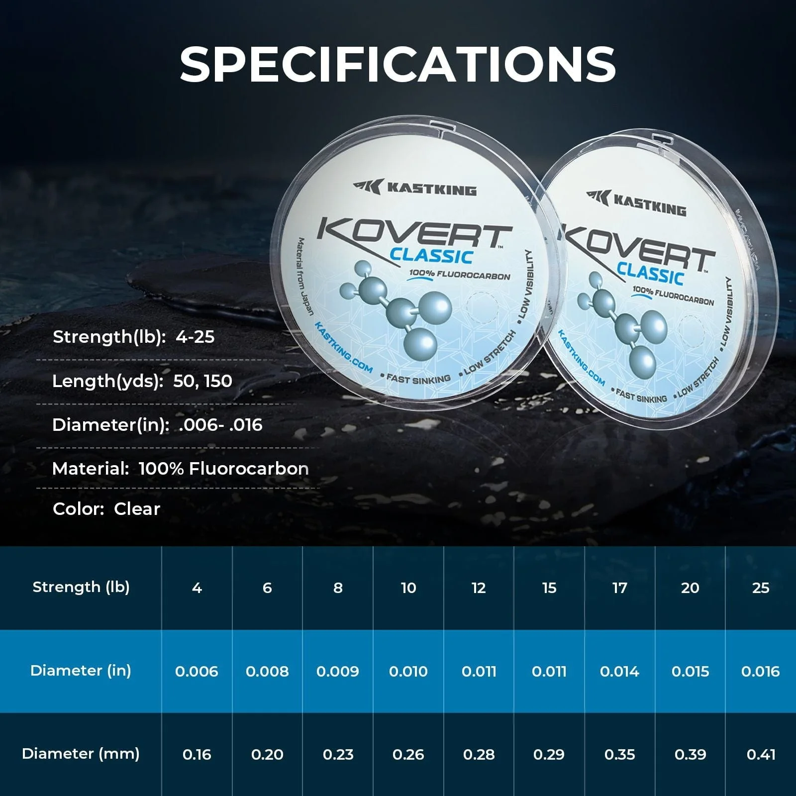 KastKing Kovert Classic is extruded in Indonesia and uses Japanese PVDF resin. It provides outstanding quality on a proven formula while still being a good value. Designed to sink fast with high abrasion resistance and great handling features.